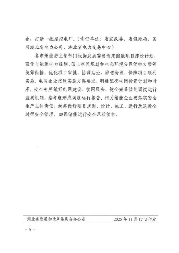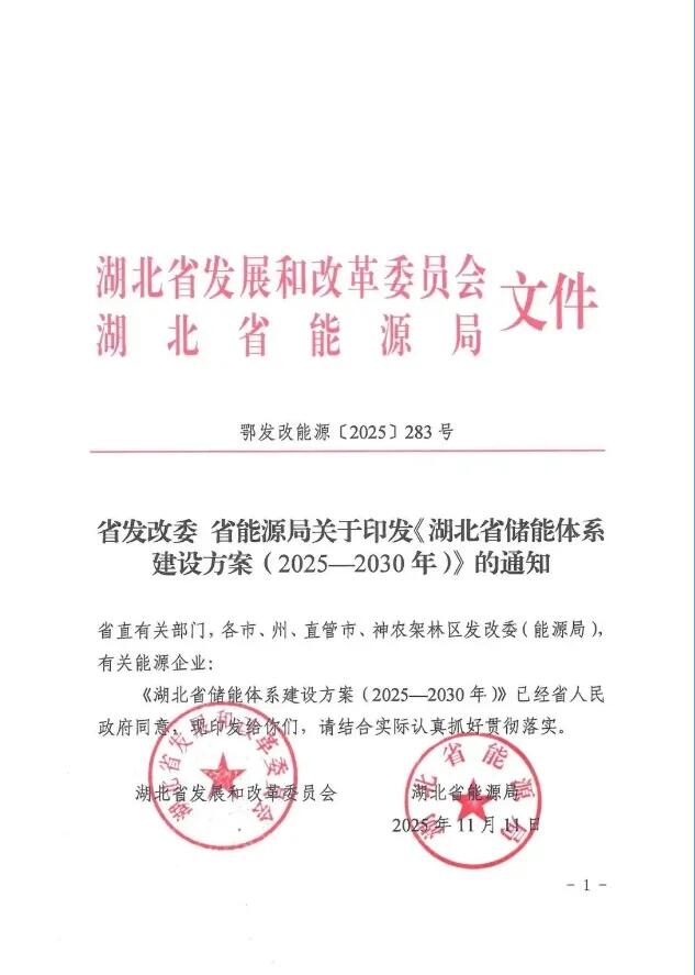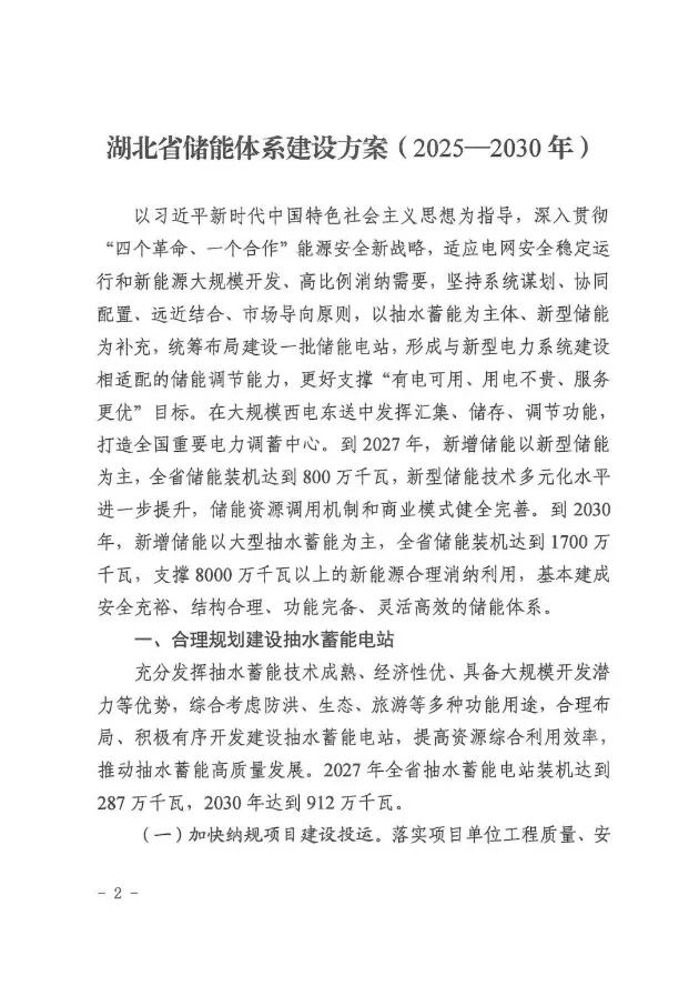 近日,湖北省发改委、省能源局联合印发《湖北省储能体系建设方案(2025—2030年)》(以下简称《方案》)。
